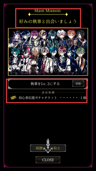 2、关注主任务,当前任务是“与喜欢的执事相遇”“将执事升到2级”,按任务指引推进,可获“初心者应援扭蛋券”等奖励,助力游戏进程。