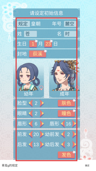 1、创建角色时,根据喜好设定姓名、生日、封地等信息,通过调整脸型、瞳色等塑造独特形象。