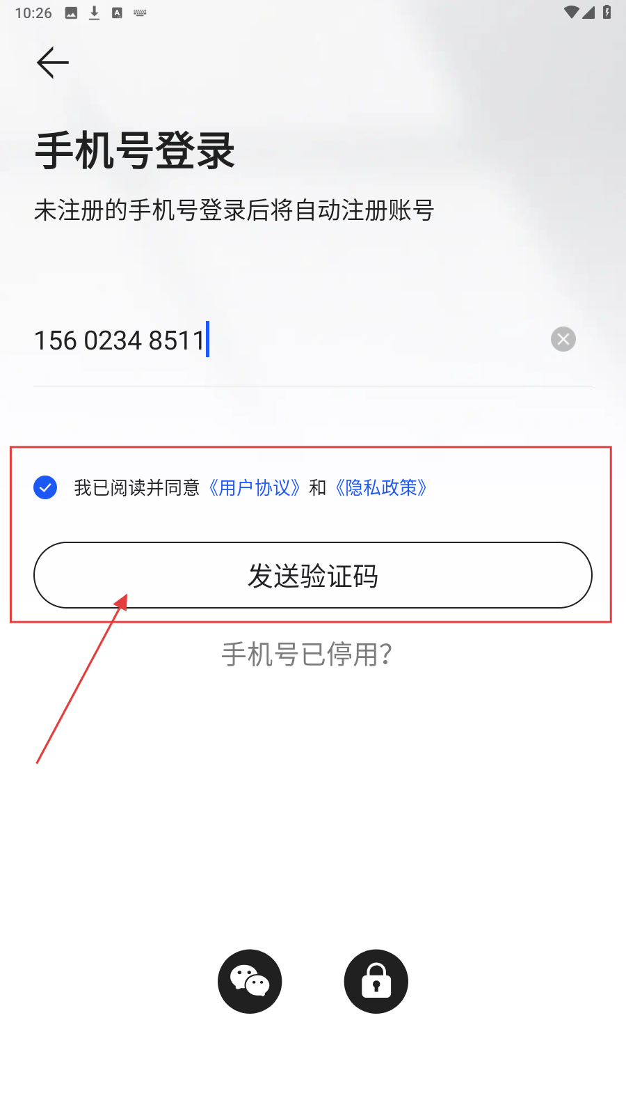 2、勾选【我已阅读并同意协议】,点击【发送验证码】。