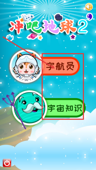 1、游戏开始,可先选择“宇航员”模式体验操控小动物宇航员相关玩法,或选“宇宙知识”模式学习宇宙科普知识。