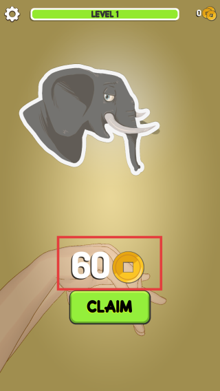 2、完成关卡任务可获得金币奖励(如60金币),点击“CLAIM”领取。积累金币后,可用于在解锁界面解锁不同手的样式,丰富游戏体验。