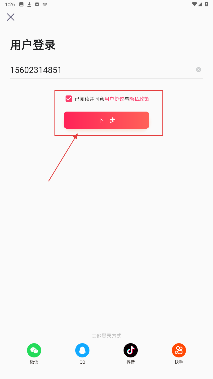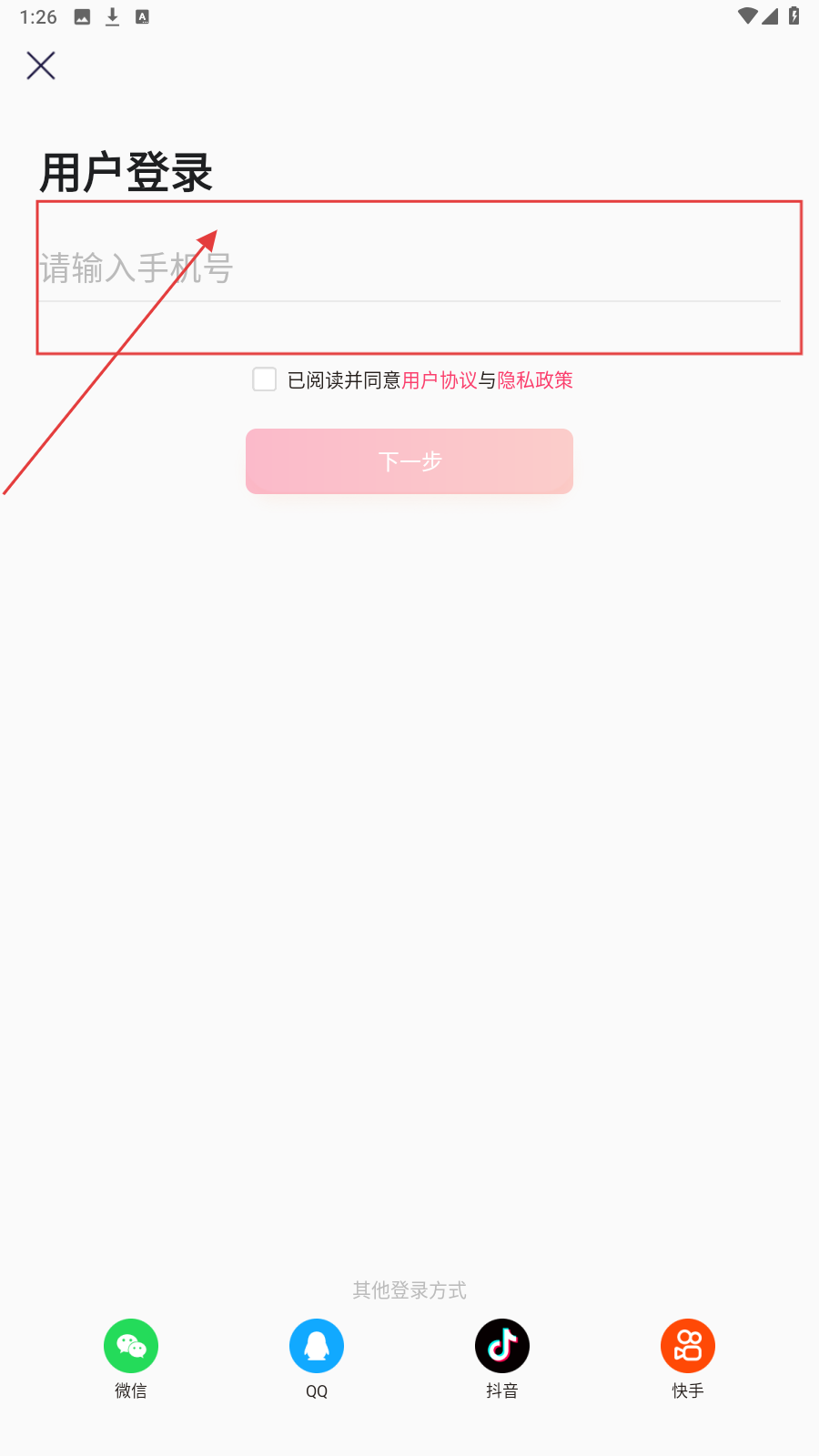 1、进入登录页,输入手机号。