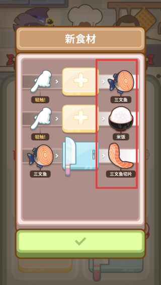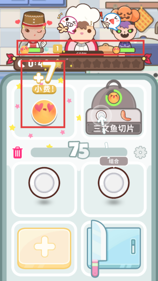 2、烹饪过程中,关注顾客需求,及时将做好的菜品(如三文鱼切片)送上,满足顾客期望,获取小费奖励(如+7小费)。