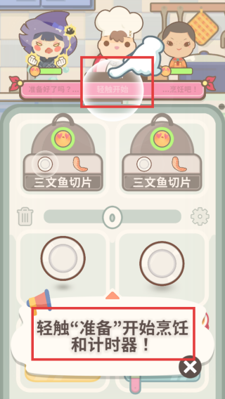 1、游戏初始,熟悉新食材,了解不同食材用途。按操作提示(如轻触“准备”)开始烹饪,留意计时器,在规定时间内完成菜品制作。