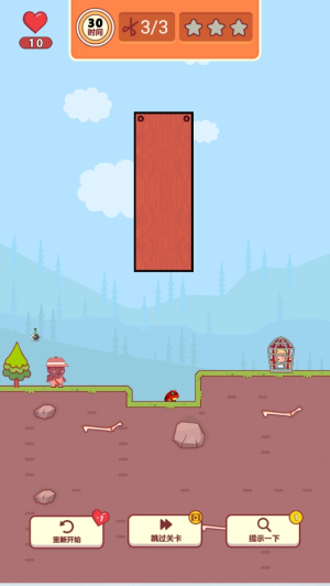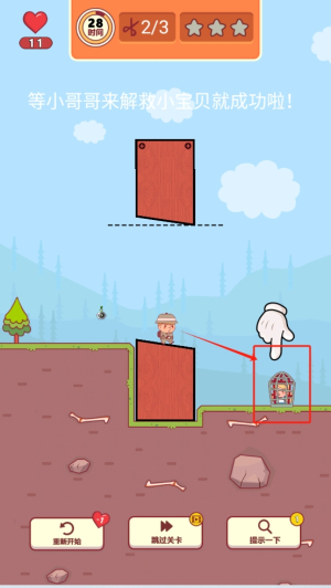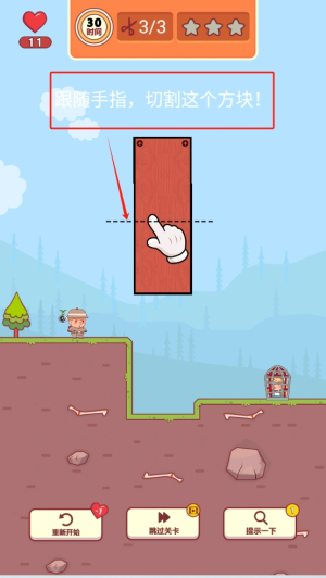 2、操作游戏:根据提示,用手指滑动屏幕切割方块以保护宝贝。