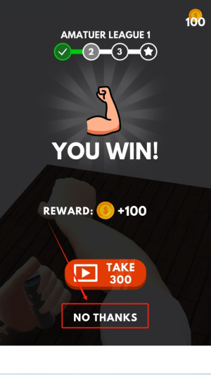 3、赢得比赛:成功击败对手后,选择“TAKE 300”以获取奖励并继续游戏。