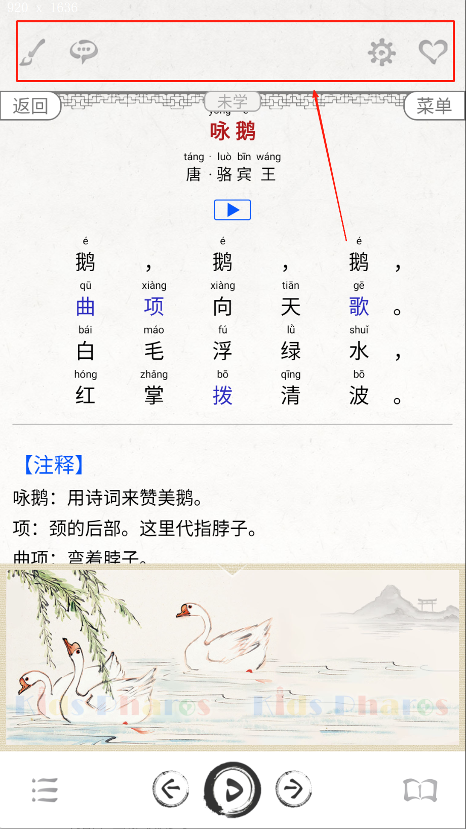 1、多模态教学:"方言课堂"含粤语吴语等七种方言朗读,简繁切换保留书法字体美感,蒙学模式用象形字图解诗词意象哦。