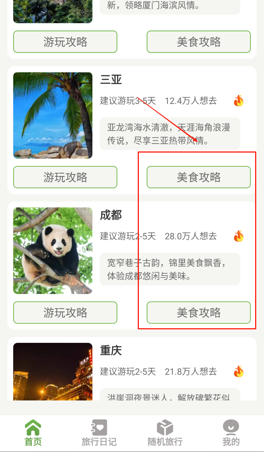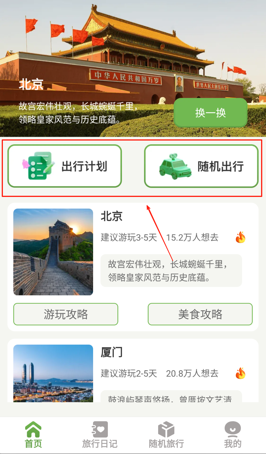 1、选择目标城市后AI自动推送最佳旅行季节与必游景点清单,拖动景点卡片可实时调整路线顺序并计算交通耗时哦。