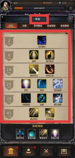 1、游戏中技能分不同等级解锁,像“法术潮汐”“超凡之体”等。升级过程中,按角色定位和战斗需求选择技能,近战可选增强攻击技能。