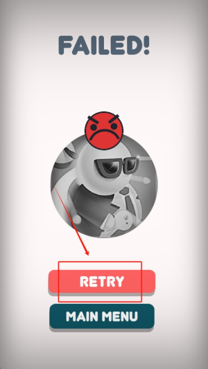 3、失败重试:如果游戏失败,点击“RETRY”按钮重新开始当前关卡。