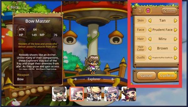1、创建角色时,若选择BowMaster职业,了解其属性和职业特点。同时,利用外观自定义选项(肤色、发型等)打造独特角色。
