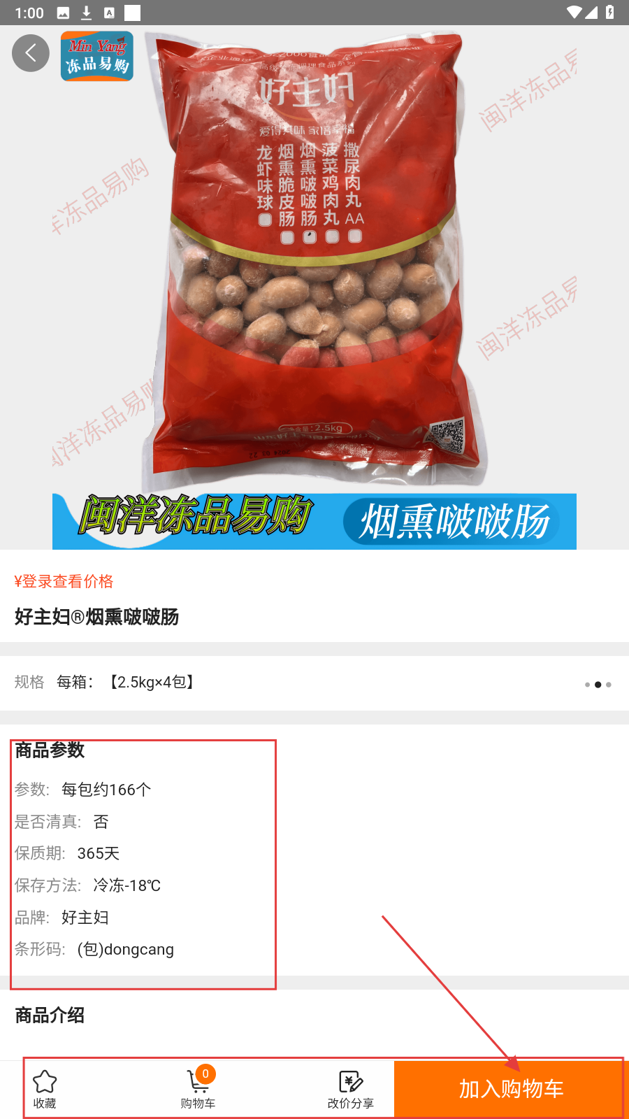 3、点商品进详情页,看参数,点【加入购物车】选购,也可收藏、改价分享。
