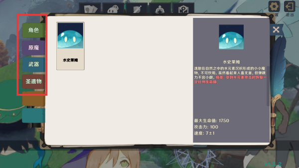 2、利用图鉴了解角色、原魔(如水史莱姆)、武器、圣遗物信息。根据怪物特点搭配角色和武器,合理使用圣遗物提升角色能力。
