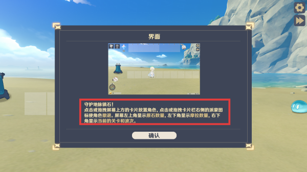 3、在守护地脉镇石玩法中,按提示点击或拖拽屏幕上方卡片放置角色防守,点击卡片栏右侧派蒙图标撤退角色。