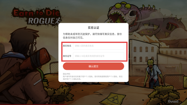 1、进入游戏,点击【实名认证】。