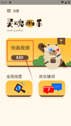 2、选择游戏模式:在主界面点击“你画我猜”按钮,选择游戏模式。