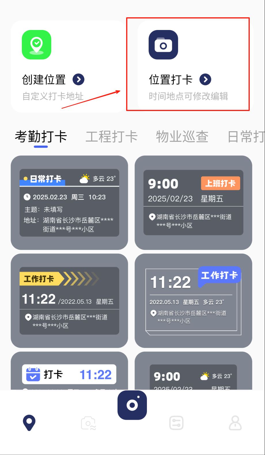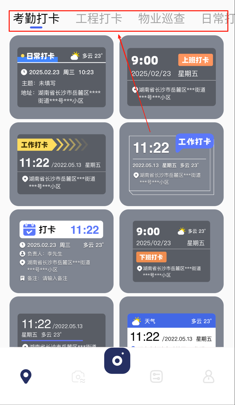 2、水印相机选"外勤巡检"模板拍照,自动嵌入时间地点与天气信息,考勤数据实时同步企业管理系统啦。