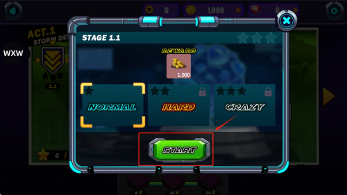 2、如何选择难度?在关卡选择界面,选择“NORMAL”、“HARD”或“CRAZY”难度,然后点击“START”开始。