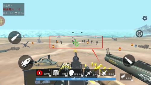 3、场景细节丰富:除沙滩战场,还有丛林、城市废墟等地图,不同环境地形影响作战,增加策略深度。