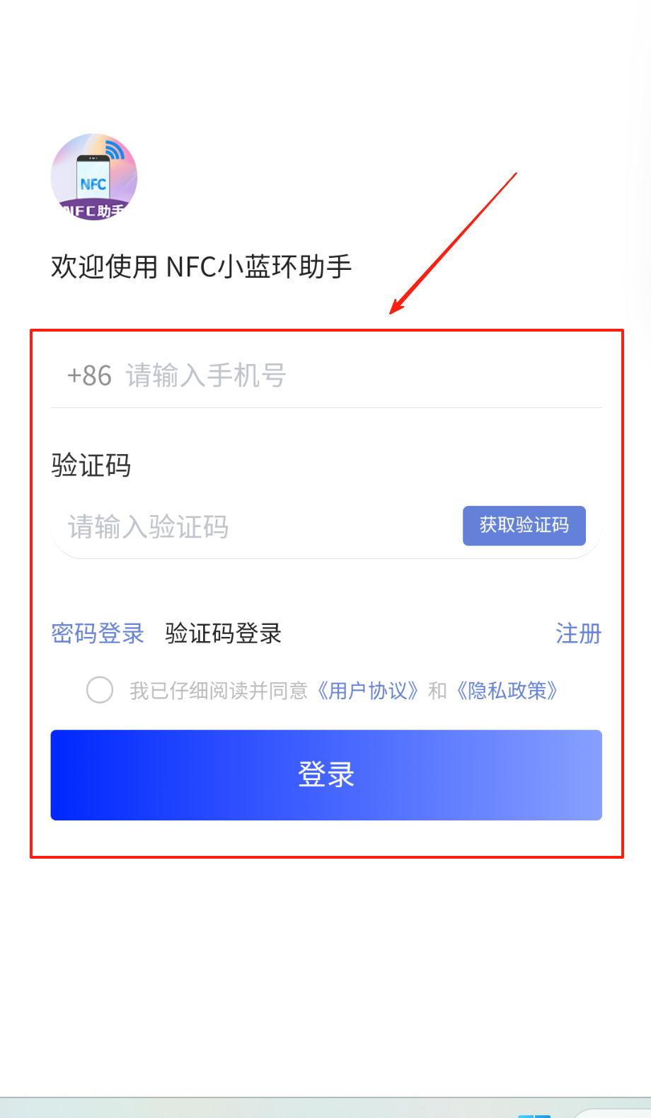 2、选验证码登录点获取验证码,短信来后填进框里,记得检查协议勾选状态,点登录等3秒加载完成啦。