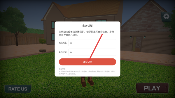 1、进入游戏,点击【实名认证】。