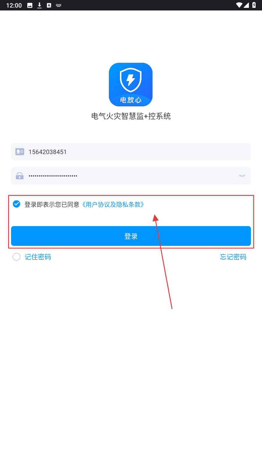 3、勾选【登录即表示您已同意《用户协议及隐私条款》】,点击【登录】,进入系统使用电气监控功能。