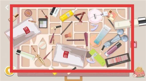 2、进入关卡后,面对杂乱的化妆品等物品,观察物品形状、大小和轮廓,将其拖动到合适格子,尽量与提示图接近。