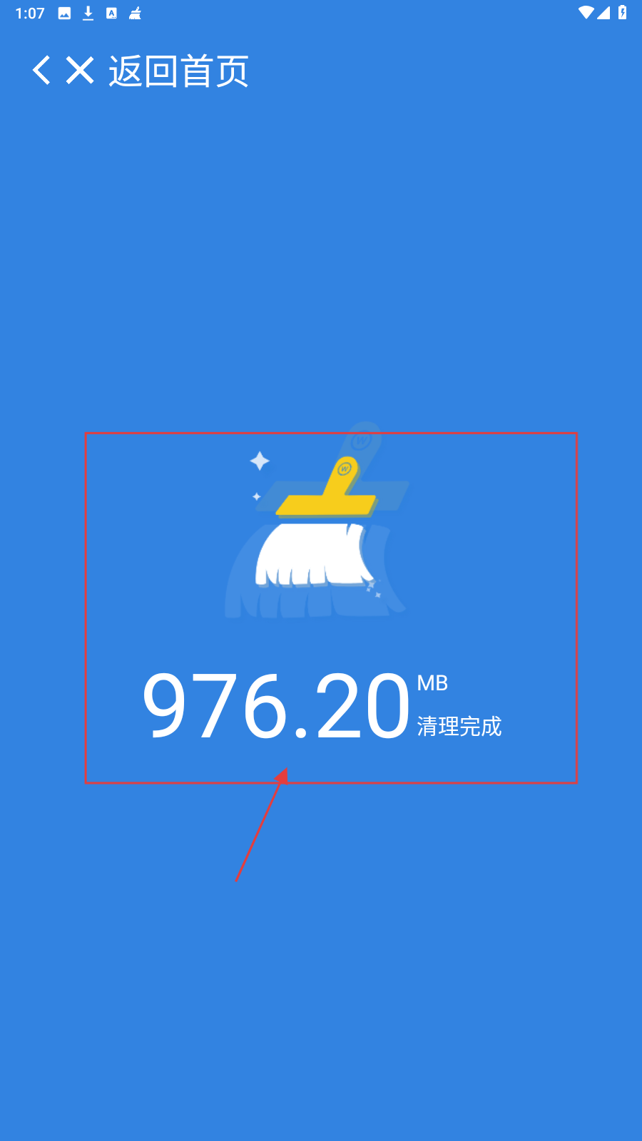 2、完成清理后跳转页面,显示“976.20MB清理完成”。