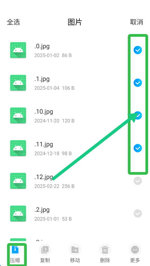 2、在【图片】列表,勾选需要压缩的图片,点击底部【压缩】功能。
