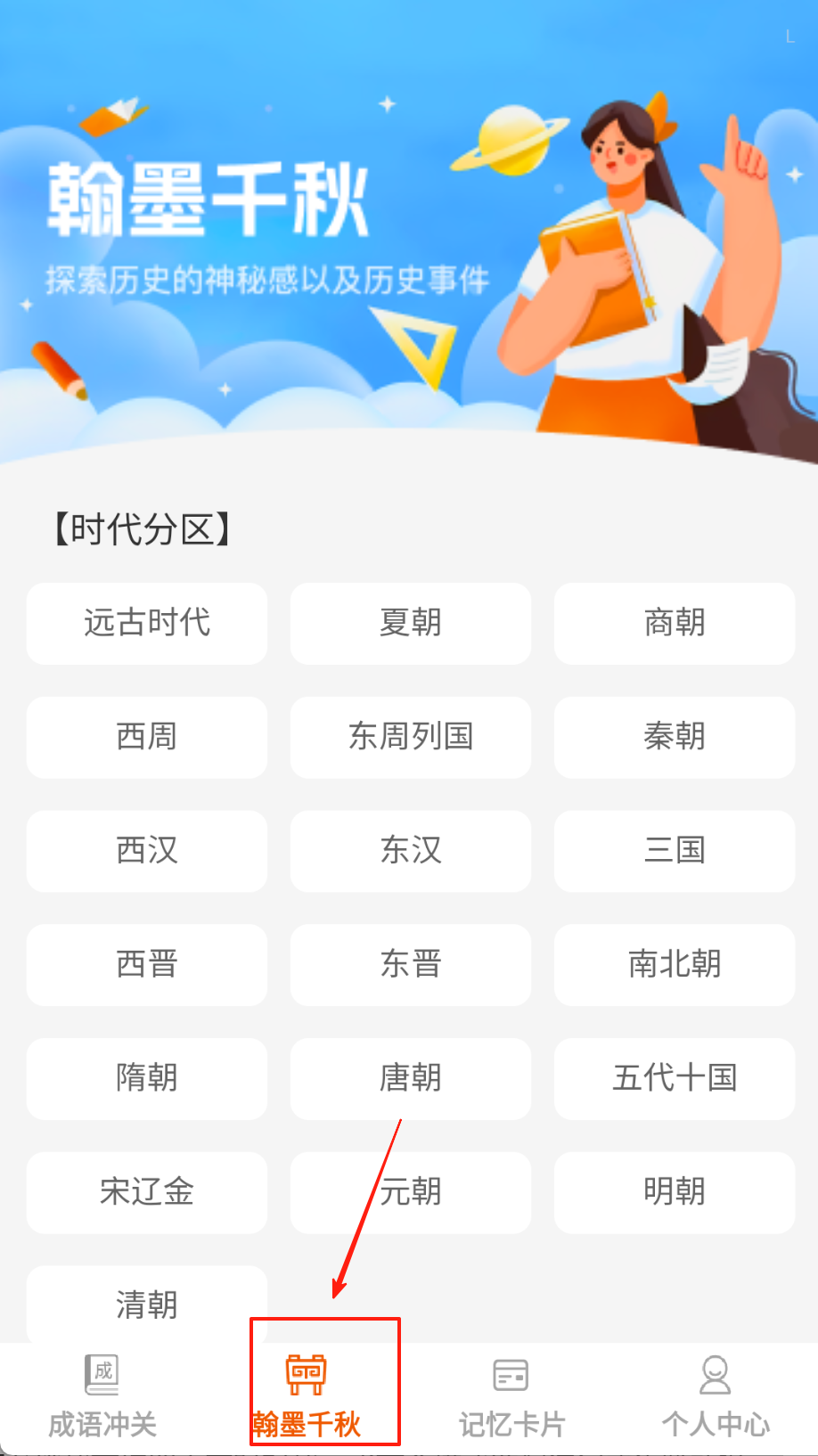 1、闯关页挑战"春秋战国"主题关卡,AI动态生成典故情景题,拆字模块解析生僻字构造,答题计时器训练反应速度哦。