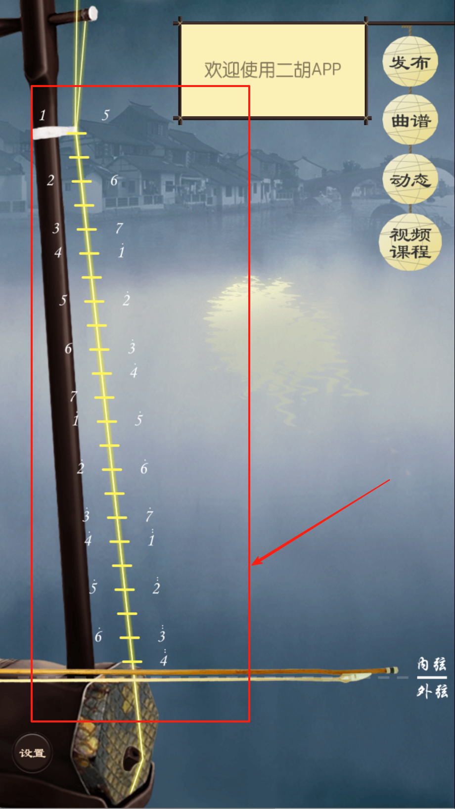 1、演奏页开启手机模拟二胡模式,触控琴弦区域触发压感反馈,AI实时纠正指法偏移误差,弓法轨迹动画演示运弓角度哦。