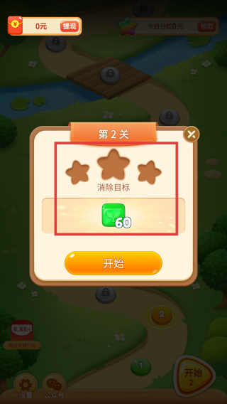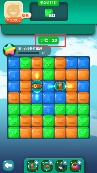 3、利用特殊道具,在步数内完成消除目标,获取关卡奖励。积累奖励可用于提现或参与分红,持续挑战更高关卡,提升游戏收益。