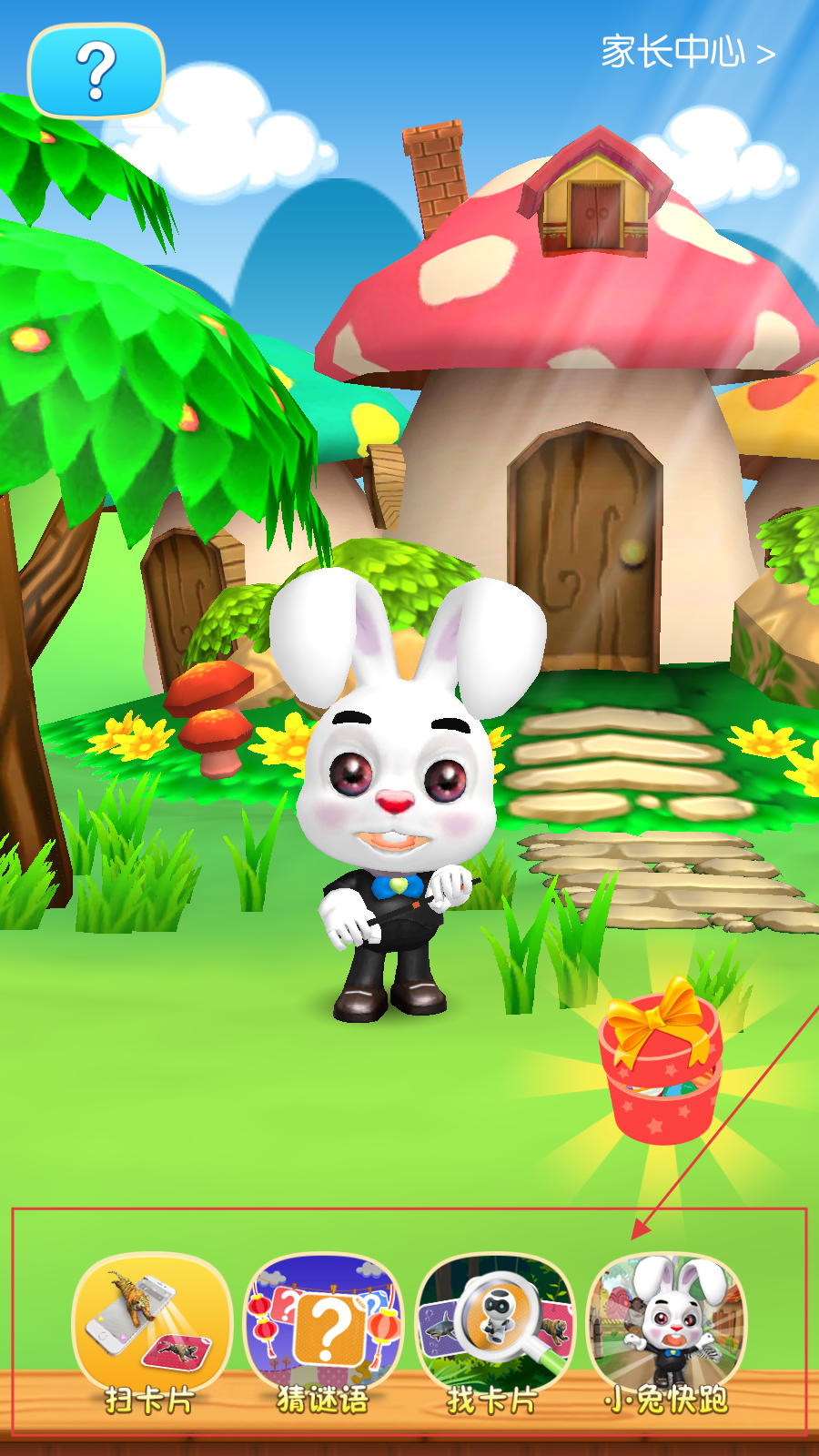 1、进入游戏主界面,底部有许多不同的功能,点击底部【小兔快跑】图标,进入模式选择。