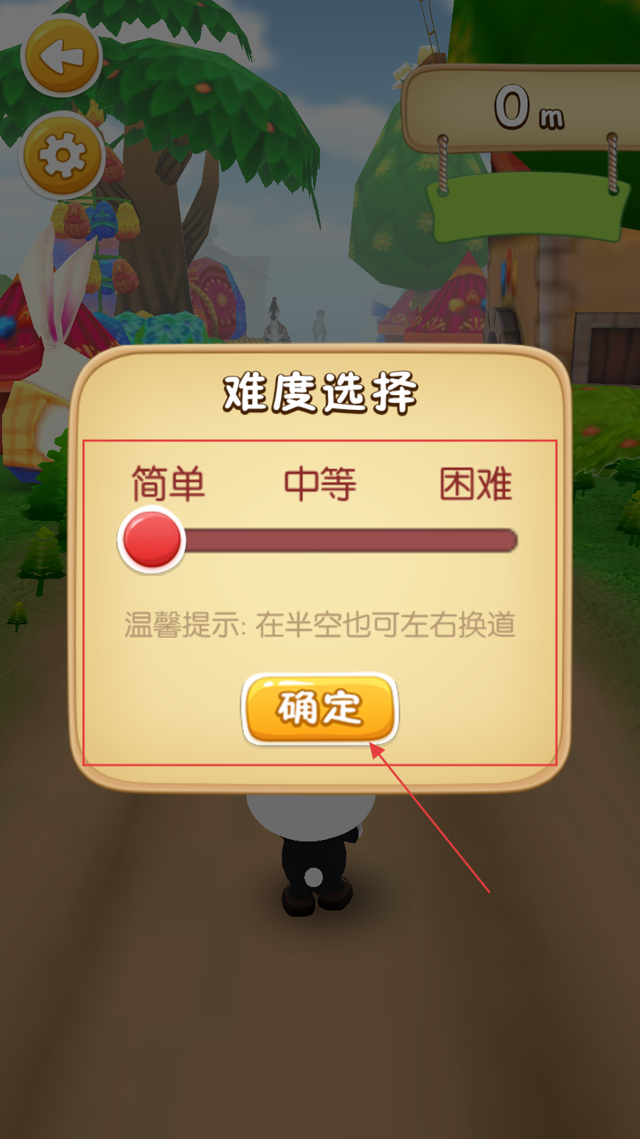 2、在【难度选择】弹窗,选难度,点击【确定】,进入游戏场景。