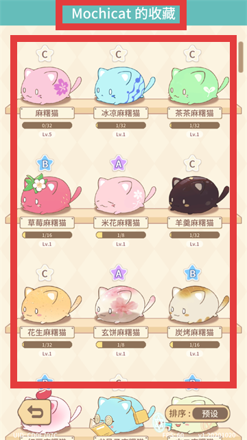 2、点击“麻糬猫收藏”,查看已拥有和可收集的麻糬猫角色,了解其等级和收集进度,通过游戏内活动或购买获取更多麻糬猫。