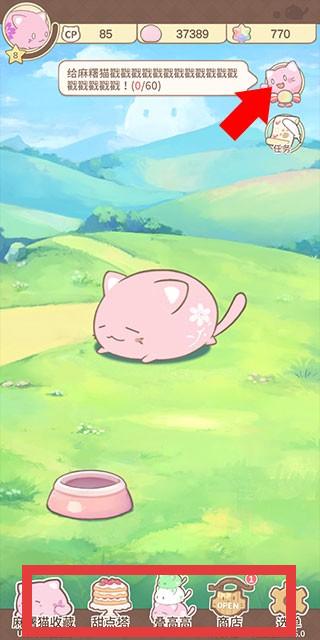 1、游戏开始,关注界面上的任务提示(如给麻糬猫数数),完成任务可获取奖励,提升游戏资源(CP、金币、钻石)。