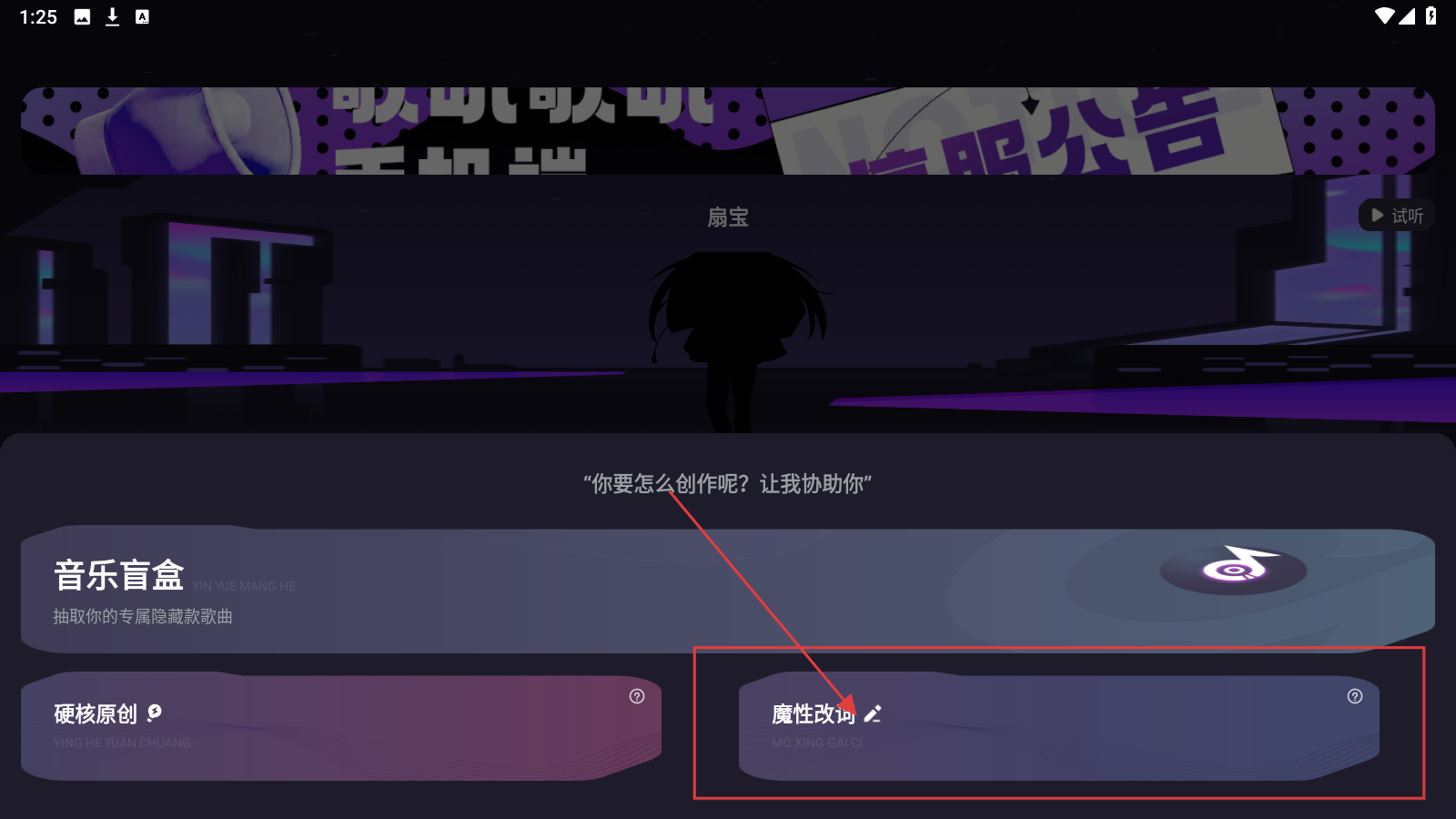 2、选择【魔性改词】模式。