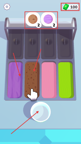 1、游戏开始,留意屏幕上方游戏货币数量,在制作冰淇淋过程中合理规划,避免浪费资源。