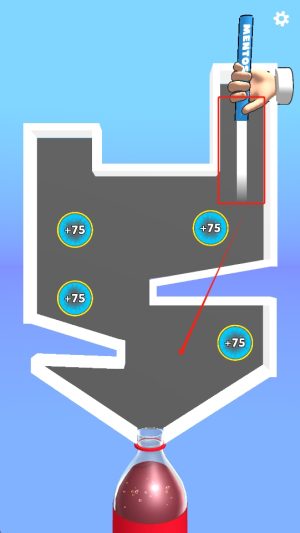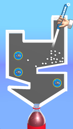 2、操控小球入瓶:通过点击或滑动屏幕,控制小球滚动、跳跃,调整方向与力度,将其精准送入可乐瓶中。
