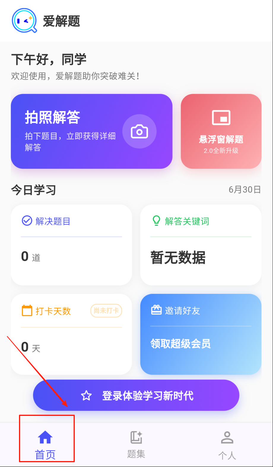 1、首页点击相机图标对准题目拍摄,AI自动框选多题区域,模糊公式启动超分辨率增强,手写体识别保留演算笔迹风格哦。