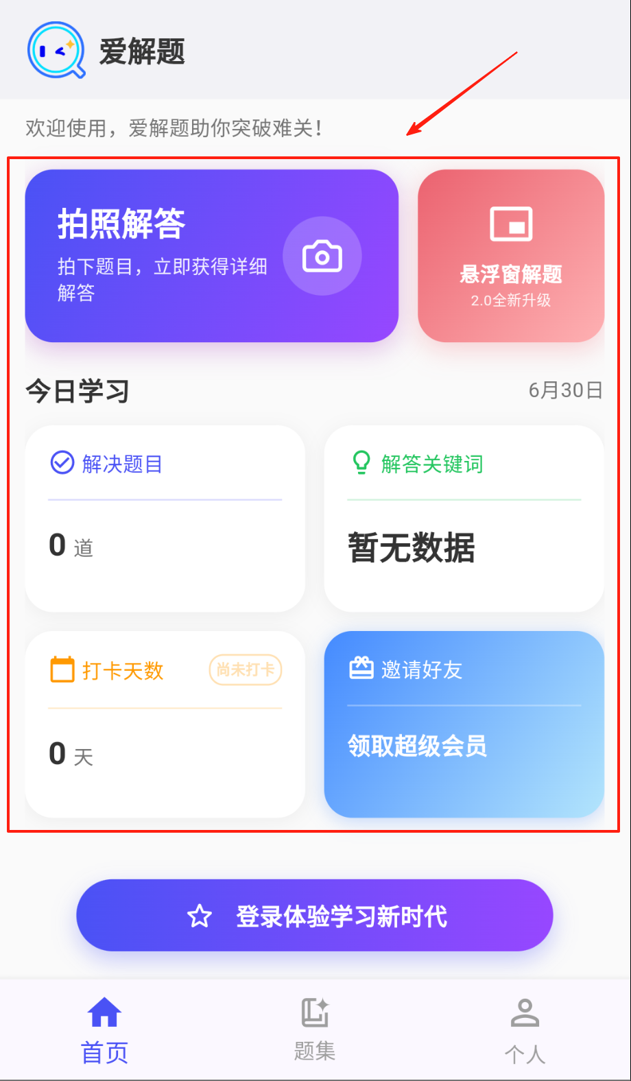 3、悬浮窗模式划出侧边栏随时拍题,学习打卡记录每日解题量,组卷功能生成薄弱点测试卷,解题报告分析能力成长曲线呀。