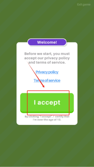 1、接受条款:在开始游戏前,点击“I accept”按钮接受隐私政策和服务条款。