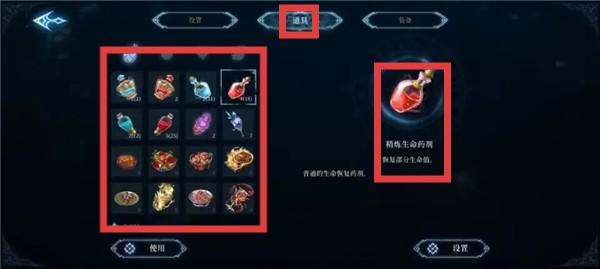 3、关注“道具”栏,熟悉各类道具的功能,比如精炼生命药剂用于恢复生命值。合理使用道具,在战斗或探索过程中保障角色状态。