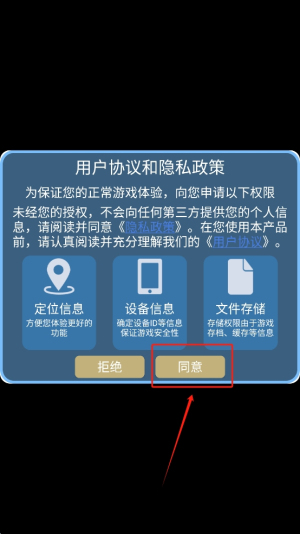 1、同意协议:在游戏开始前,阅读并点击“同意”按钮以接受用户协议和隐私政策。