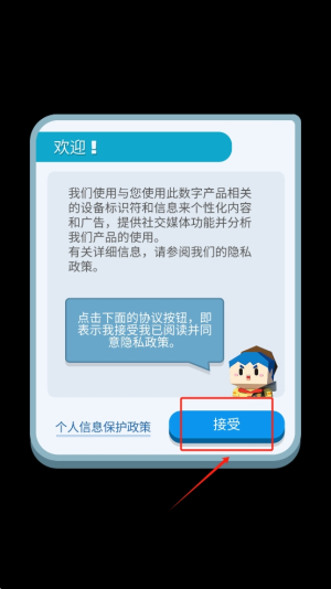 1、同意隐私政策:在游戏启动时,点击“接受”按钮以同意隐私政策并开始游戏。