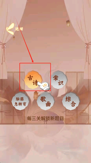 2、选择答题类别:在答题选择界面中,点击“古诗”类别,进入该类别的答题界面。