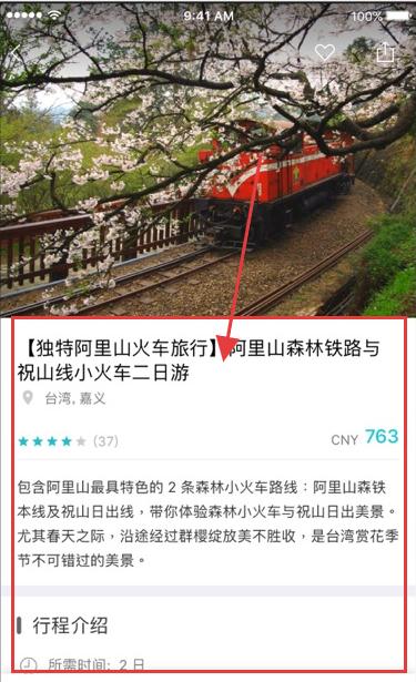 2、进入行程详情页,查看行程介绍(含线路、特色、所需时间)、价格、用户评价,确认想预订则提交订单。