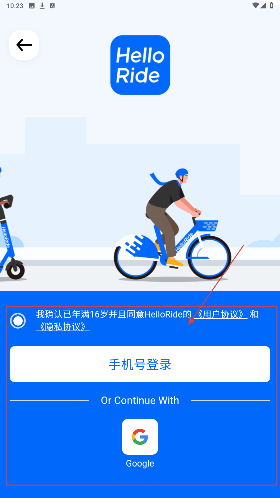 1、打开应用,勾选协议,选择【手机号登录】或【Google】登录方式。