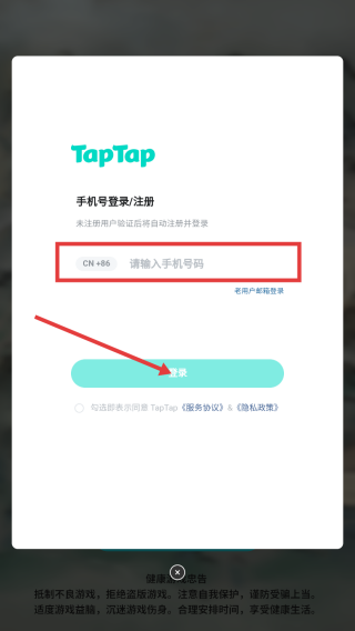 1、进入游戏,点击【TapTap登录】。