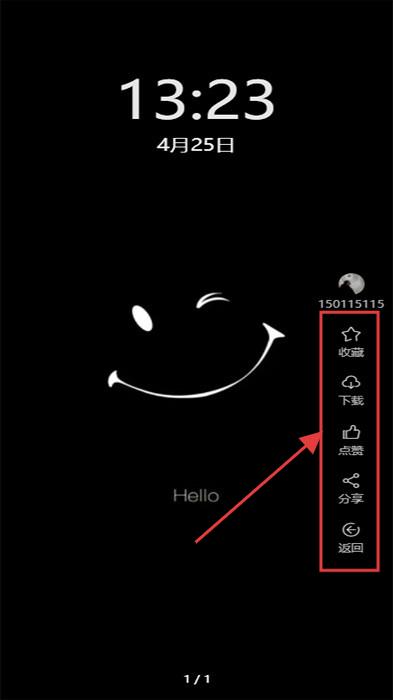 2、进入壁纸详情页(如笑脸壁纸),右侧有【收藏】【下载】【点赞】【分享】【返回】功能,可操作保存或互动。